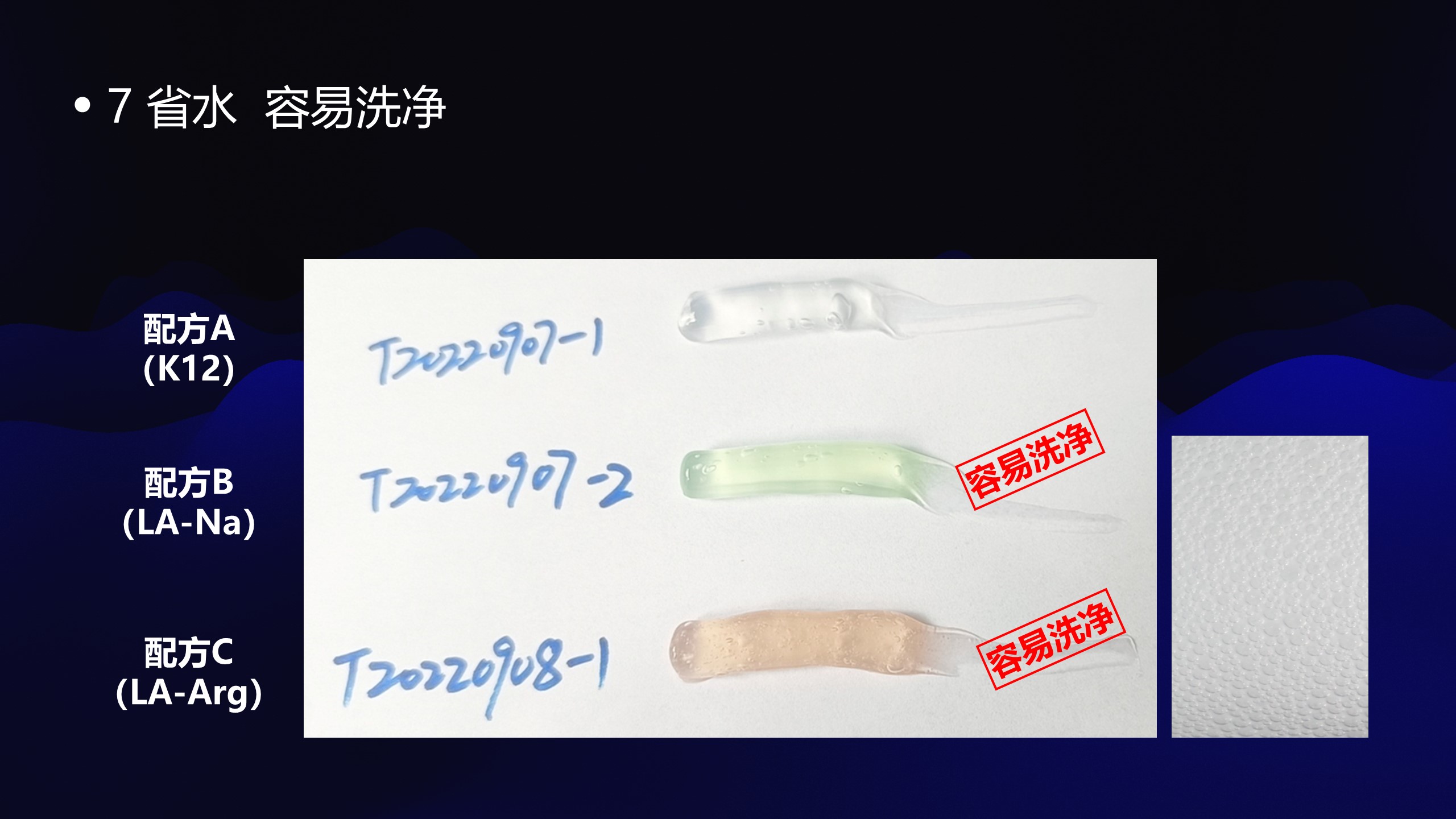 ①LA清洁产品比传统清洁产品省水50%以上,容易洗净,一次漂洗。