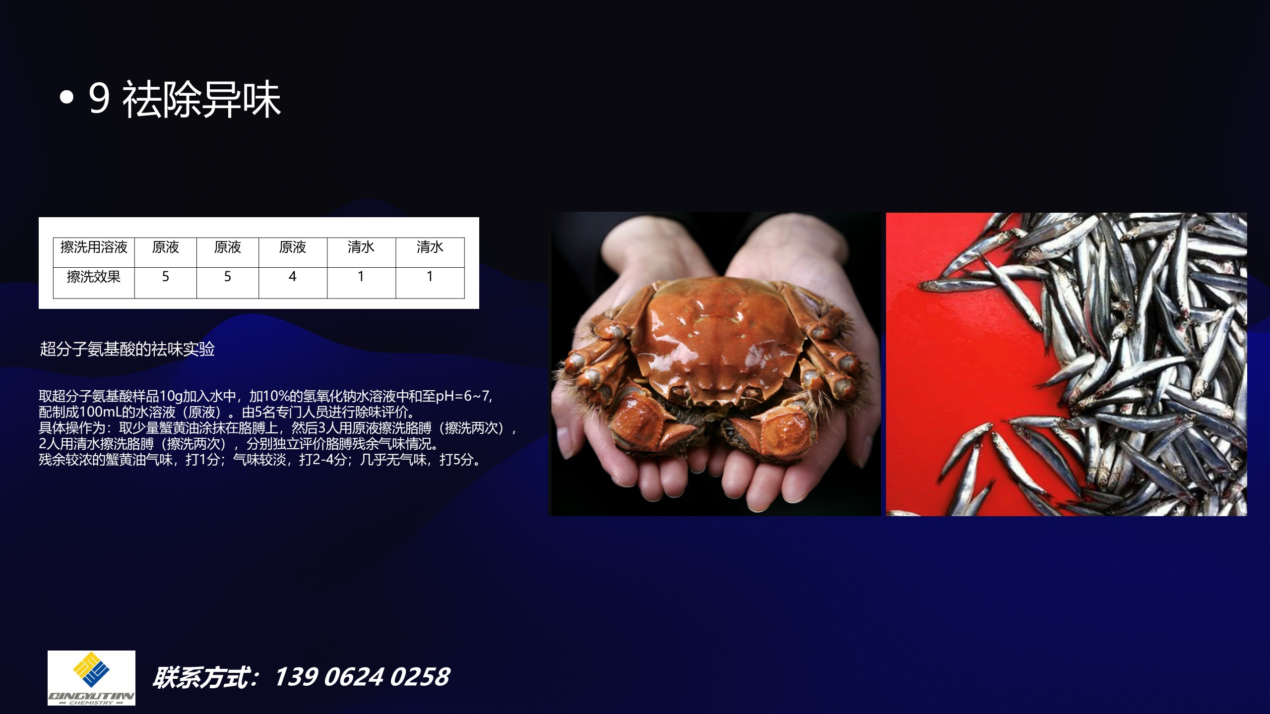 ③LA具有去除异味功能。苏州是有名的阳澄湖大闸蟹产地,每年秋冬季大家都会品尝美味的螃蟹。但是,螃蟹好吃,吃了螃蟹后,手上的腥味却很难去除。这也是一直困扰螃蟹爱好者的难题。但是用LA配制的洗手液清洗后,手上的腥味很容易去除