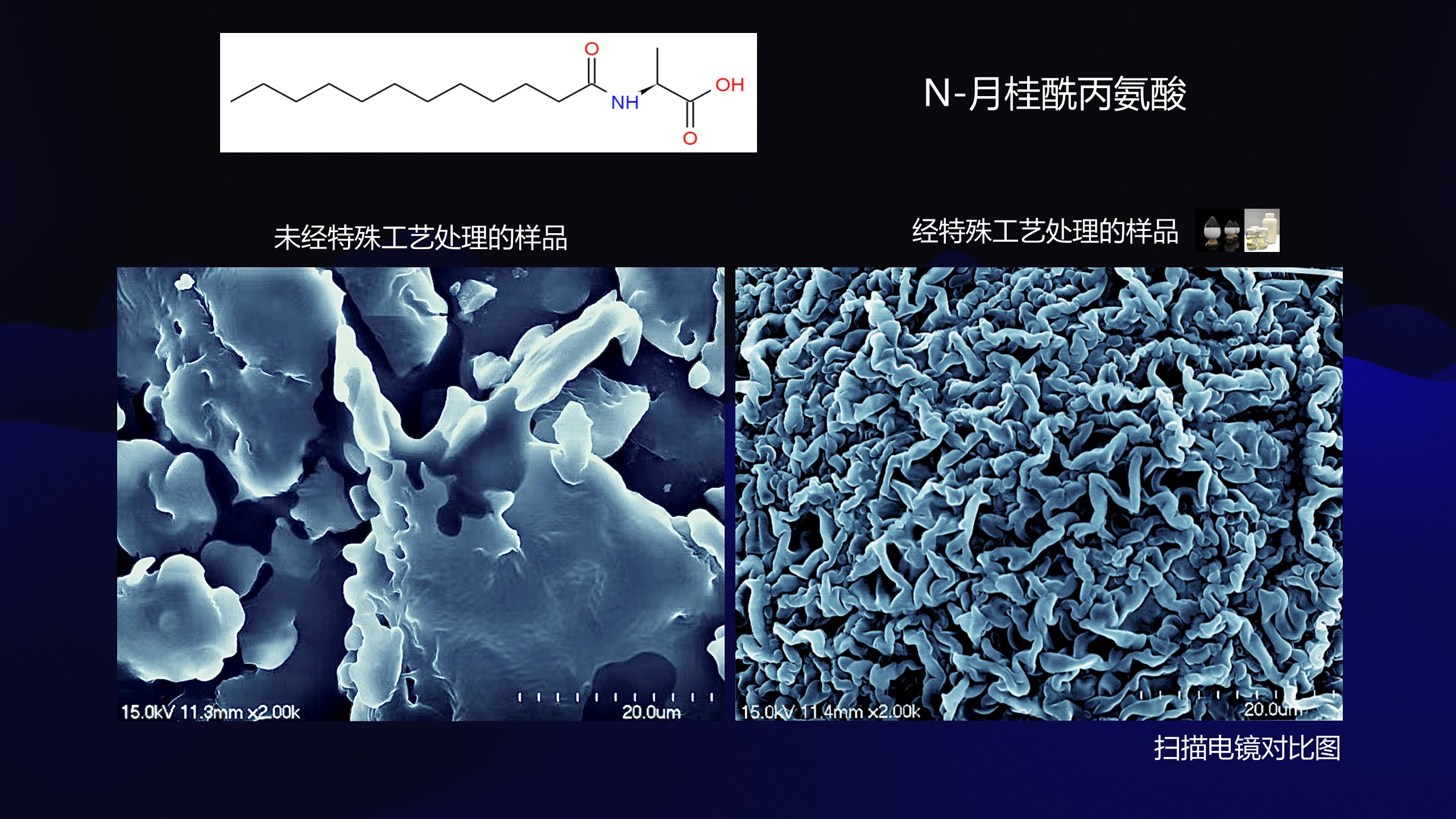月桂酰丙氨酸是丙氨酸的衍生物,由L-丙氨酸和月桂酰氯在碱性条件下发生反应,酸化后制得粗品,粗品经过重结晶,过滤干燥后制得成品。